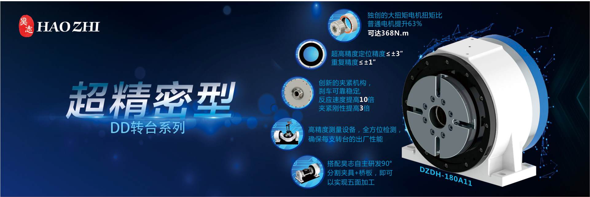 本产品为力矩电机摇篮五轴转台,主要应用于数控机床上,作为机床第四轴,可分别以垂直或水平两种方式安装于机床工作台上。