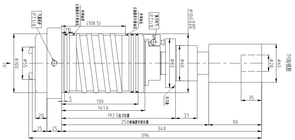 6、独特设计:独特性的气幕密封+迷宫密封设计使主轴的密封效果有革命性的提升,有效的防止切削液和异物入侵,使主轴在比较恶劣的工作条件下仍可正常使用,减少密封问题引起的机台故障,为客户提高效率。