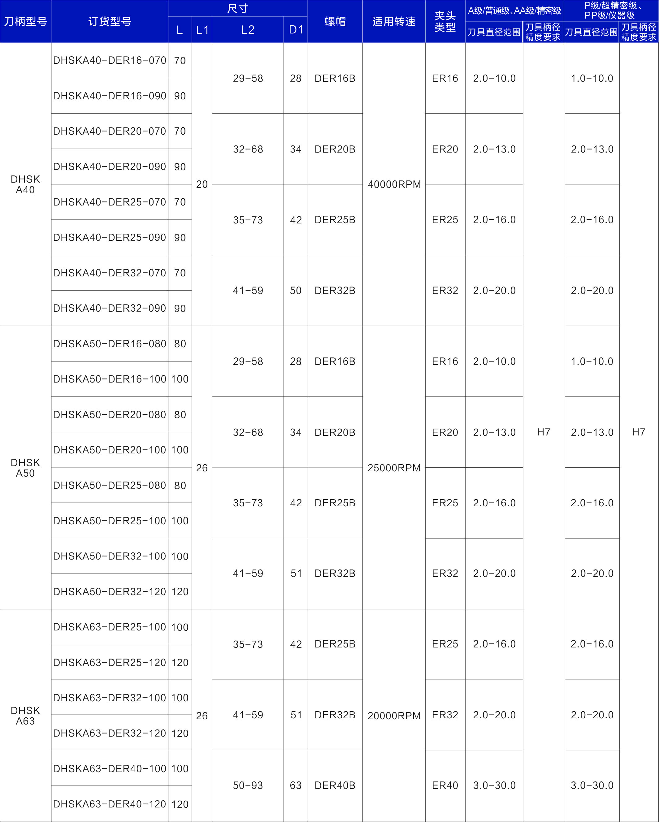 HSKA刀柄配合ER夹头的优势为:精度高,使用寿命长,可夹持范围为Φ1.0-30.0mm的H7精度的刀具,广泛应用于铣、钻、攻丝、雕刻等加工领域。